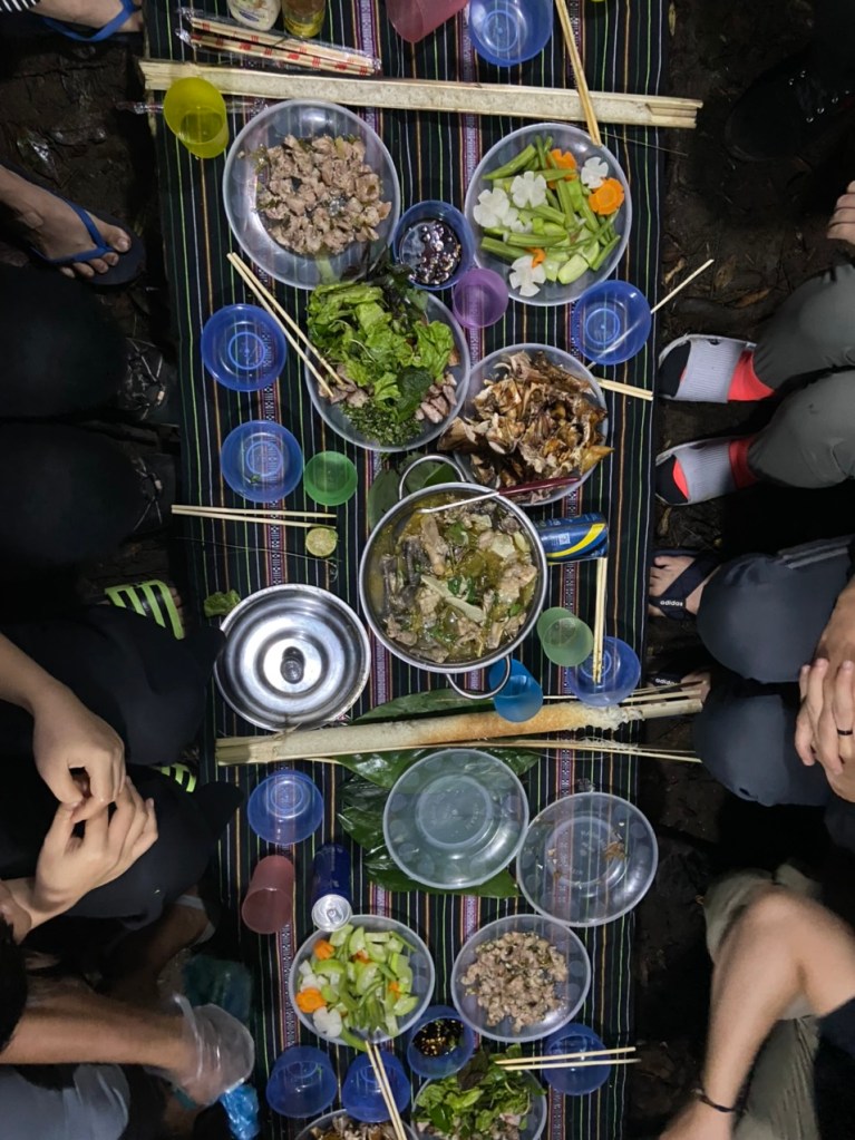 Cảm ơn anh Xim, anh Tuân và anh Long của Lak Tour đã dẫn đoàn tụi em một cách nhiệt tình, dễ mến Làm tụi em cứ phải ô a liên tục vì tiêu chuẩn “thẩm mỹ” của mọi người. “Tô canh cũng phải cắt hoa cho ngon, bàn phải trải khăn cho thẳng thớm, chụp hình cũng phải chuẩn nha” =)). Và hơn tất thảy, mọi người ai cũng toả ra niềm yêu thiên nhiên một cách thuần khiết, đôi mắt lúc nào cũng ánh lên rạng ngời. Vì thế mà năng lượng cứ vui sao.