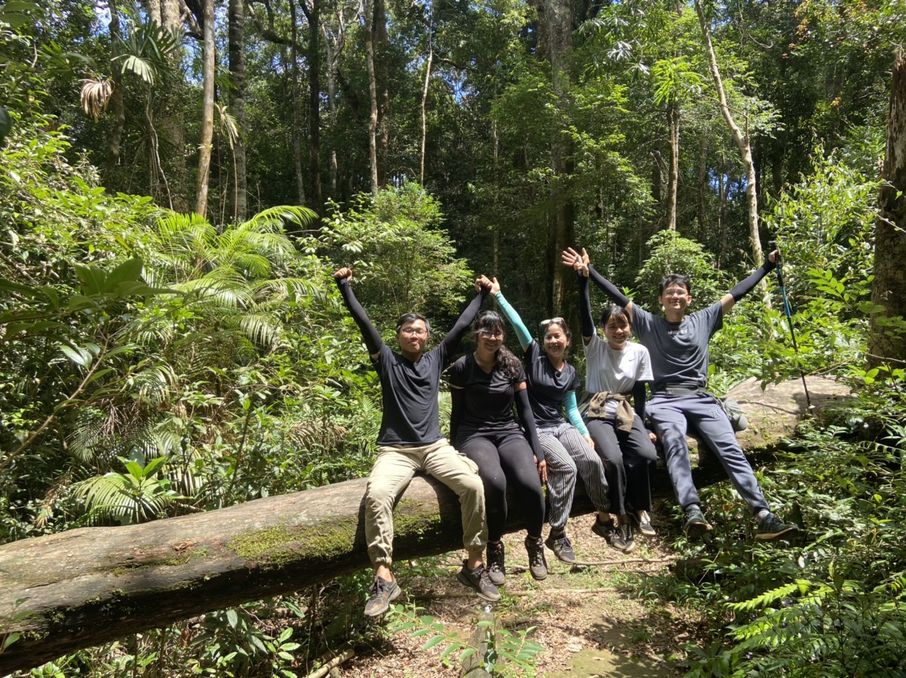 Con đường leo đến đỉnh Chư Yang Lak tụi mình vượt qua kha khá địa hình đa dạng, từ trèo đèo đến lội suối, dốc đá, sườn dốc và cả các mỏm đá mẹ đá cha, băng qua khu rừng nguyên sinh… Chặng đường trekking dài tầm 13km để đến đỉnh với độ cao 1.634m. Có những khoảnh khắc mỗi lần gặp phải một chướng ngại vật, và khi chân mình chỉ muốn rã đi vì mỏi, chúng khiến mình nhớ tới khoảng thời gian vừa qua. Những con suối với những mỏm đá rêu trơn trượt, những bậc thang đất đỏ dễ té hay những cành cây, gốc rễ bắc ngang đều có thể gây cản trở hành trình, giống như những bài kiểm tra vượt chướng ngại vật để đo sức bền vậy, đỉnh núi cao kia chính là phần thưởng cho tất thảy khi ta vượt qua được. Cũng như cuộc sống này thôi, đôi khi cái chúng ta hơn nhau cũng chỉ là độ lì lợm, hay còn là một cách gọi khác của sự kiên trì, để đạt được ước muốn. Mình nghĩ vì mình thích thử thách cái bản tính lì lợm ấy, nên mình cứ thế mà đi, điều ấy giúp mình cảm thấy “đã”, cho một điều gì đó cứ chực chờ phóng bay.